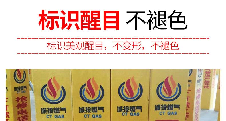 標(biāo)志樁又稱為警示樁、標(biāo)識樁、標(biāo)志樁,常用于電力、通信、燃?xì)?、自來水、鐵路地埋管線路徑指示標(biāo)志。用于戶外、綠化帶、灌木叢、頂管兩側(cè)管線路徑指示,起到警示作用的新型產(chǎn)品。
