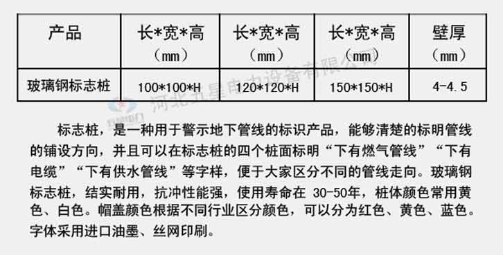 玻璃鋼標(biāo)志樁是一種用于警示地下管線的標(biāo)識(shí)產(chǎn)品,玻璃鋼標(biāo)志樁結(jié)實(shí)耐用,抗沖性能強(qiáng),使用壽命長(zhǎng)達(dá)30-50年。