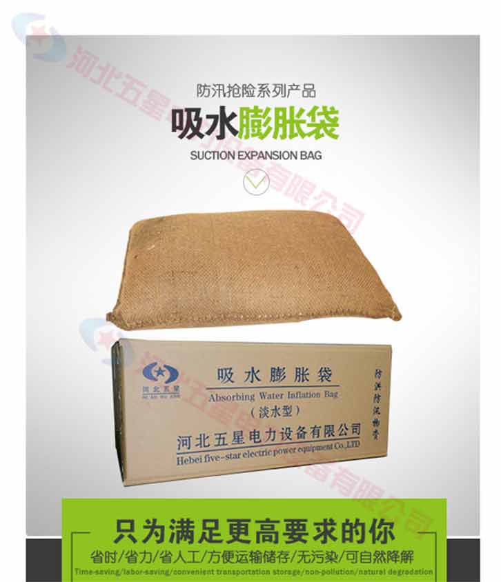 以水治水,快速膨脹,管涌以及快速構(gòu)筑擋水壩,封堵缺口,替代沙袋,替代沙袋和編織袋。操作簡(jiǎn)單,攜帶運(yùn)輸方便,遇水膨脹速度快,浸入水中 3 分鐘即可迅速膨脹至 18 ~ 20 千克,吸水膨脹袋 經(jīng)現(xiàn)場(chǎng)測(cè)試比沙土包堵截速度快9倍,使用時(shí)只需一人就可以完成,勞動(dòng)強(qiáng)度大為減輕,無毒,無害,無味,無污染,可自然降解